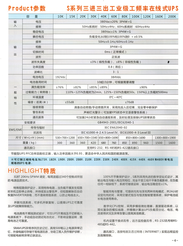 市電與電池轉(zhuǎn)換時(shí)間為零,旁路與逆變轉(zhuǎn)換時(shí)間小 2ms, 有效保證了負(fù)載安全可靠運(yùn)行。